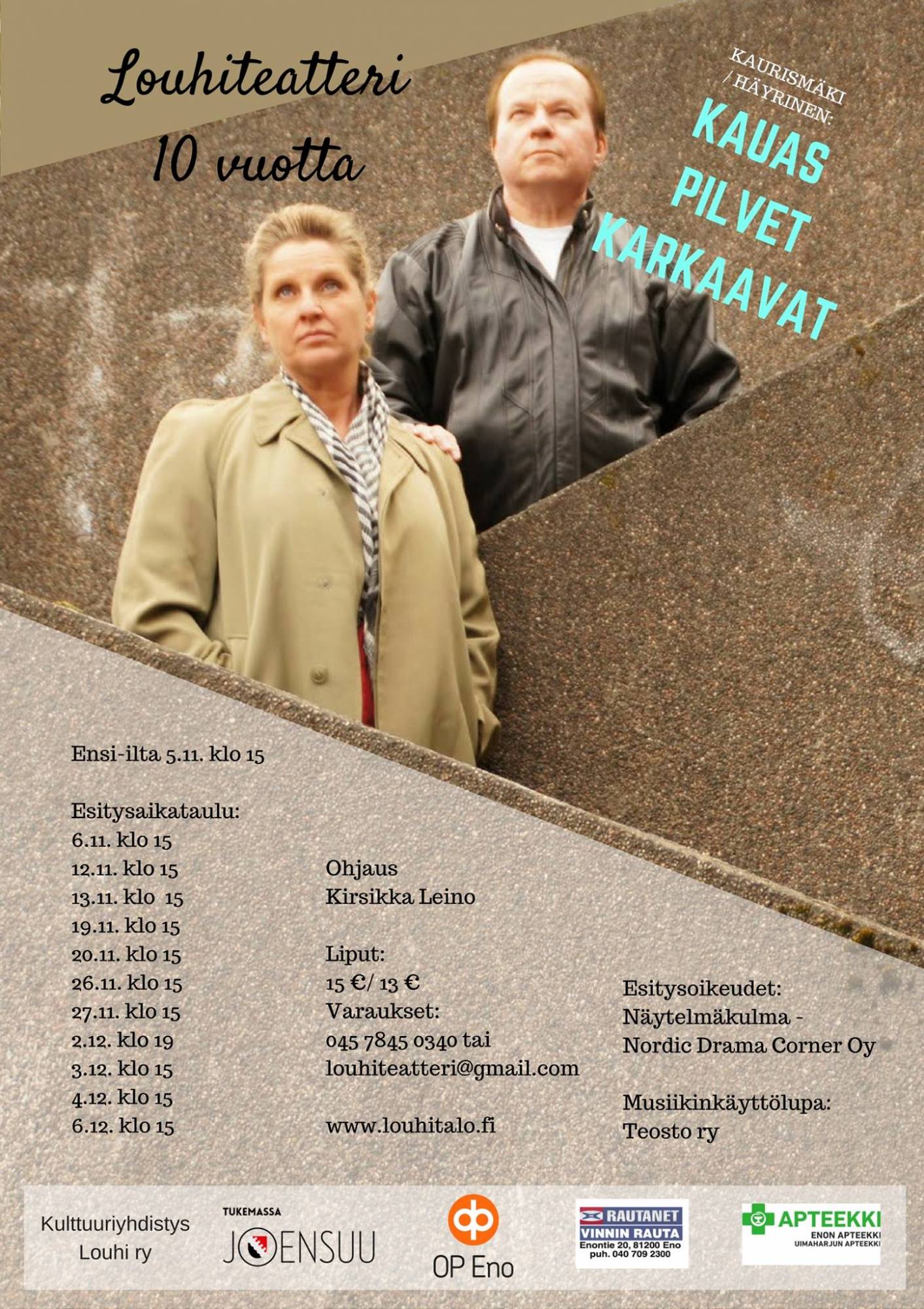 Niin alkoi teatteritoiminta Louhitalolla vuonna 2006 näytelmällä Juurakon Hulda, nyt kymmenvuotisjuhlien näytelmä on Aki Kaurismäen / Anna Häyrisen käsikirjoittama Kauas pilvet karkaavat. Joka syksy on esitetty uusi näytelmä ja joka kerta hirsitalo on ollut tupaten täynnä katselijoita. Tyhjille mutta ah niin kauniinharmonisille hirsiseinille ei ole tarvinnut näytellä: myös tämän syksyn kaikki esitykset ovat loppuunmyytyjä.