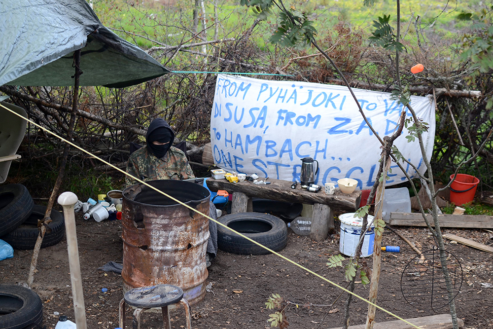 Leiri on toistaiseksi edelleen toiminnassa ydinvoimayhtiö Fennovoiman työmaa-alueen ulkopuolella. Nälkälakkolaiset vaativat, että puussa olevalle henkilölle on saatava toimittaa ruokaa ja muita tärkeitä tarvikkeita.