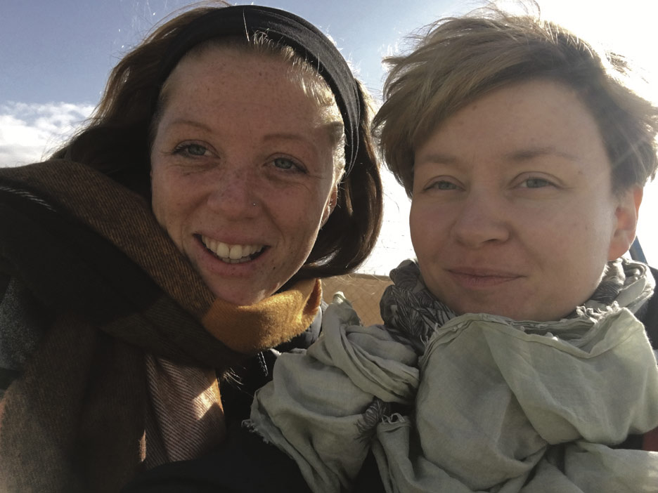 - Lauren Hales ja Susanna Hast aavikon kylmässä tuulessa.
