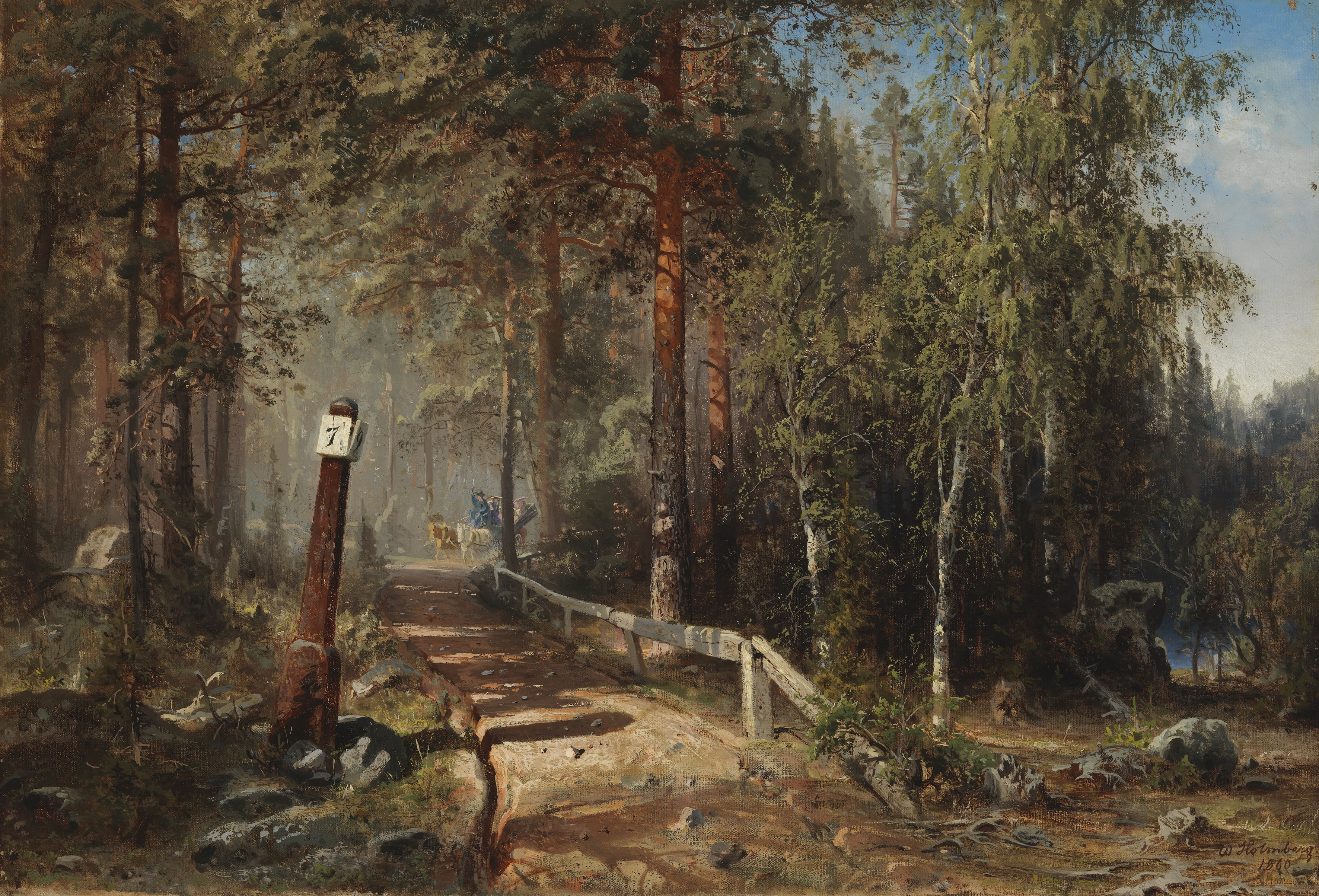 Werner Holmbergin maalaus Postitie Hämeessä vuodelta 1860.