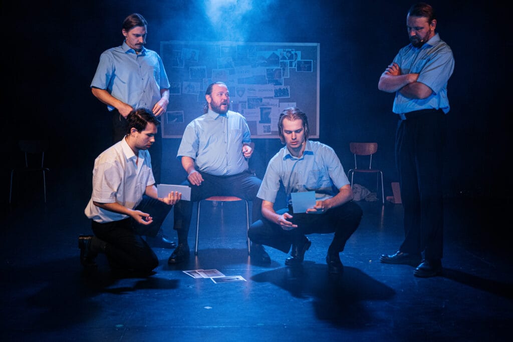 Sukupuolijännitteitä peilaa myös samassa Dirty Deal -teatterissa esitettävä Valters Sīlisin ohjaama Alfas. Tämä viiden miessolistin ja lyömäsoittajan voimin esitettävä true crime -kamariooppera kertoo, miten neljän poliisin ja yhden siviilin kopla tekee aseellisen ryöstön ja tappaa työvuorossa olevan poliisin. Latvialaisten luokkajännitteiden ohella sen katse porautuu ongelmallisiin miesroolimalleihin.