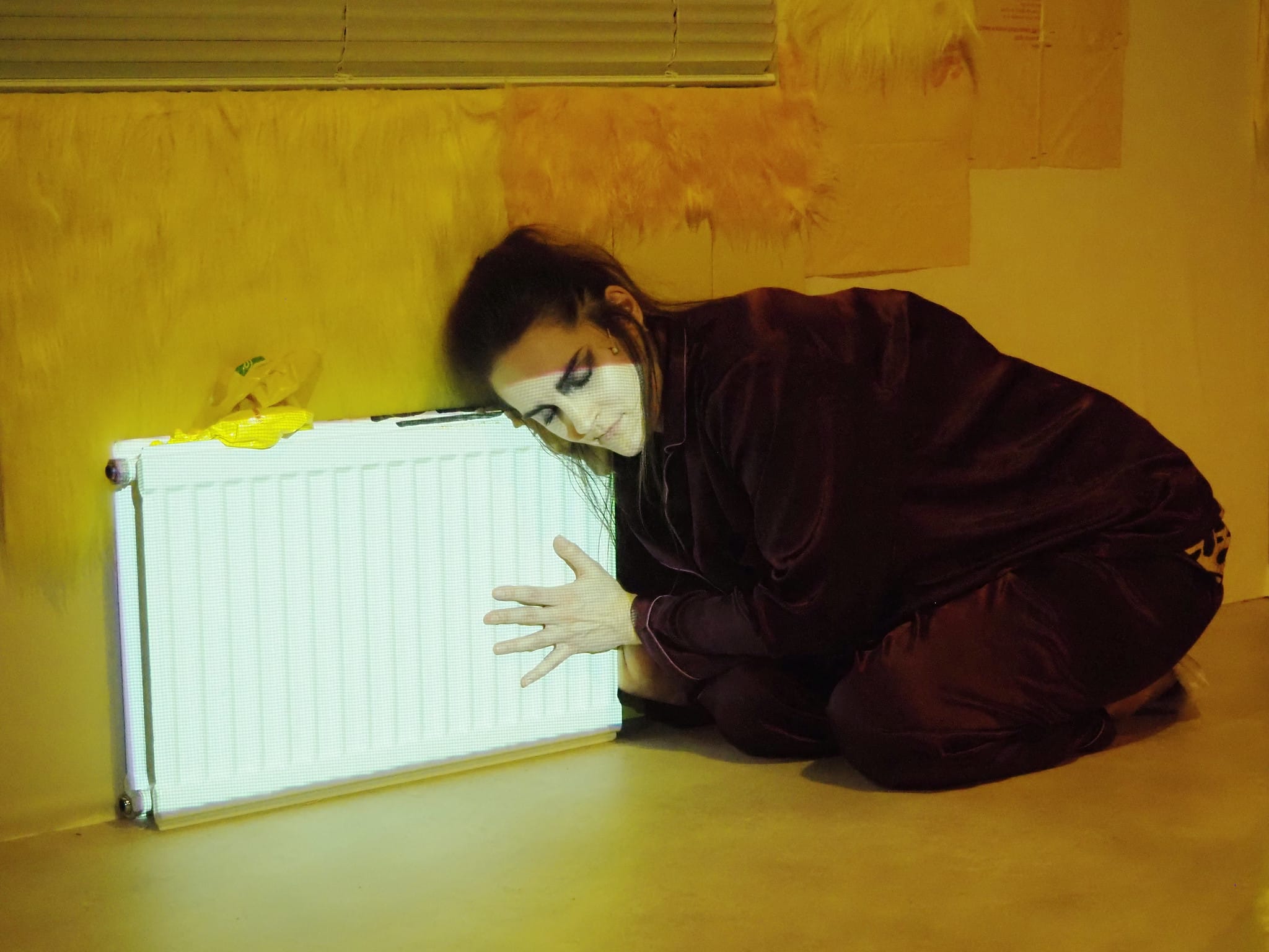Alussa näemme pieneen kerrostalohuoneistoon eristäytyneen Sylvi Keskosen (Sara Paasikoski) hurjassa Nina Hagen -meikissään hivelemässä patteria. Tilataideosta muistuttavassa asunnossa huonekalut ovat karvaisia ja kirkkaan keltaisia, samaan värimaailmaan sopivat hyvin myös seinälle liisteröidyt Alepan muovikassit. Vedenlämmittimiä on näkyvillä neljäkin kappaletta, niistä osa jo ehkä loppuun käytettyjä.