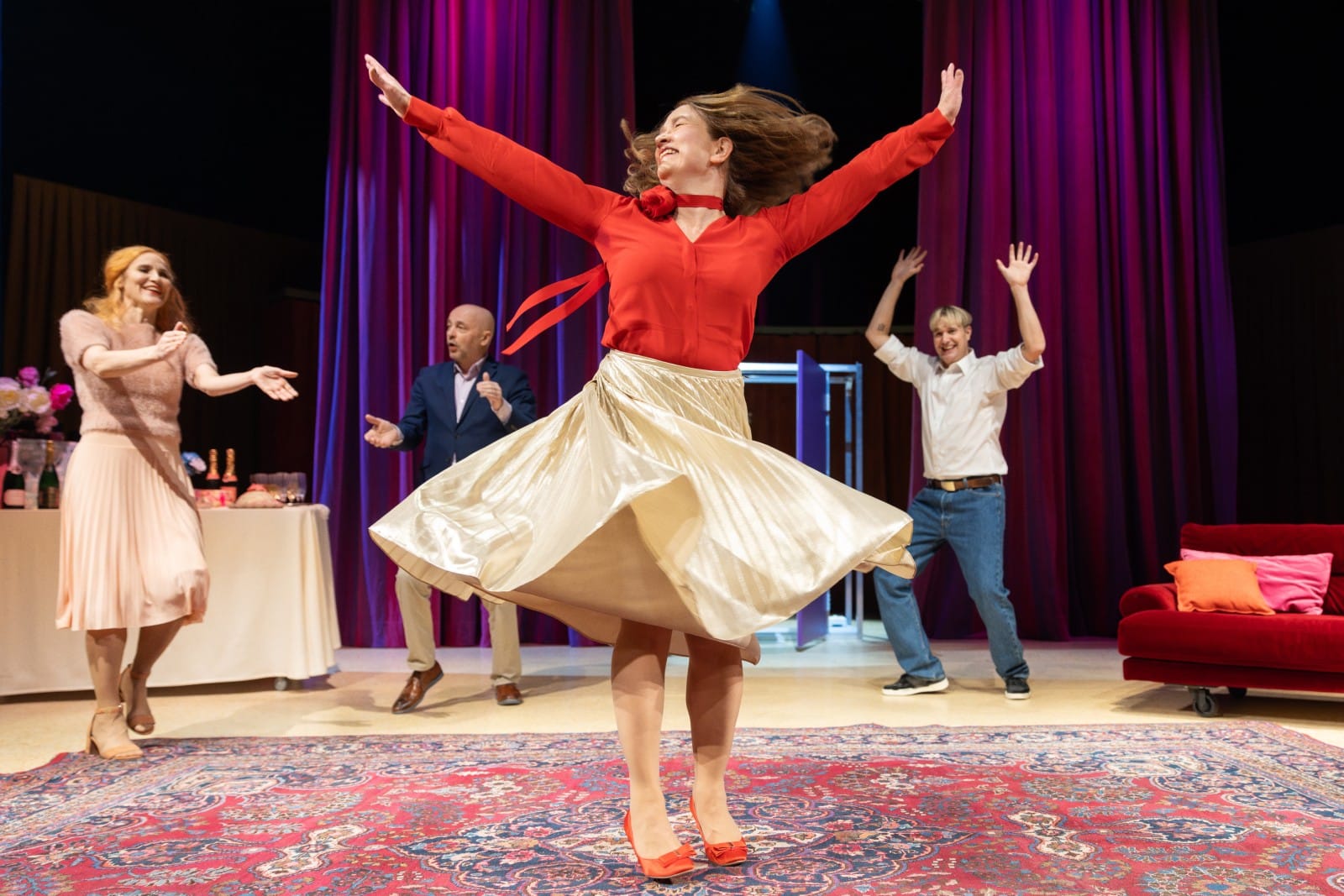 Liisa Mustosen vauhdikkaasti revittelevä ja humoristinen ohjaus kunnioittaa teatteritaiteen lisäksi popmusiikin klassikoita. Ja onhan teoksessa jopa flamencoa, sydänten valloitusleikeistä mitä parhaiten muistuttavaa kiihkeää rytmiikkaa.