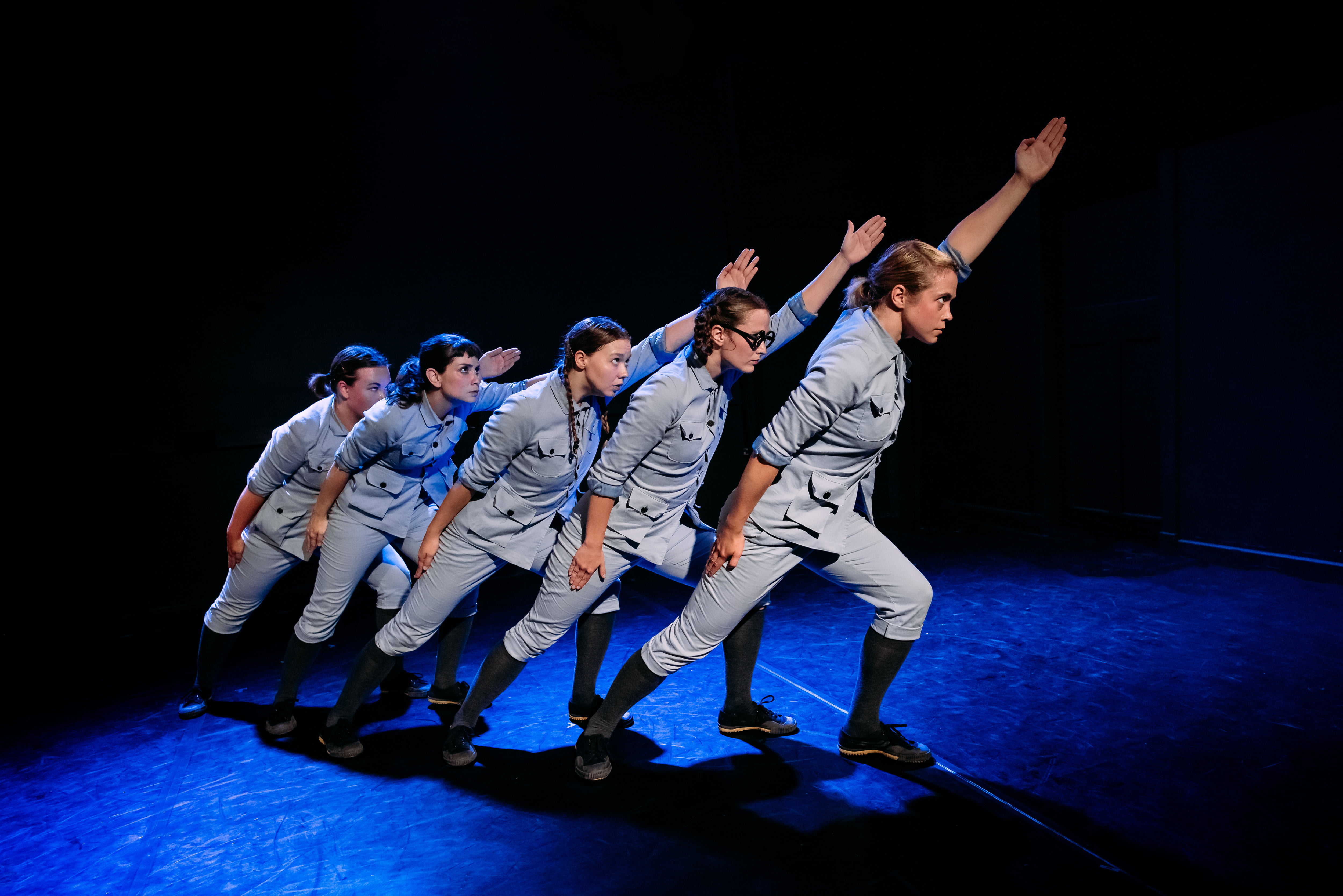 Kuudelle esiintyjälle kirjoitetun esityksen kuvakieli ja symboliikka ovat pelkistetyn tehokkaita. Näyttämöllä nähdään sotilaallisessa univormussa tärkeilevä opettaja ja joukko oppilaita yhtenäisissä koulupuvuissaan. Viimeisen päälle hallitussa joukkoliikehdinnässä on muistumaa entisten sosialististen maiden ryhmävoimistelunäytöksistä, mutta samalla sen kuvaamaa kollektiivista kuria haastaa energian ja uteliaisuuden kahlitsemattomuus.