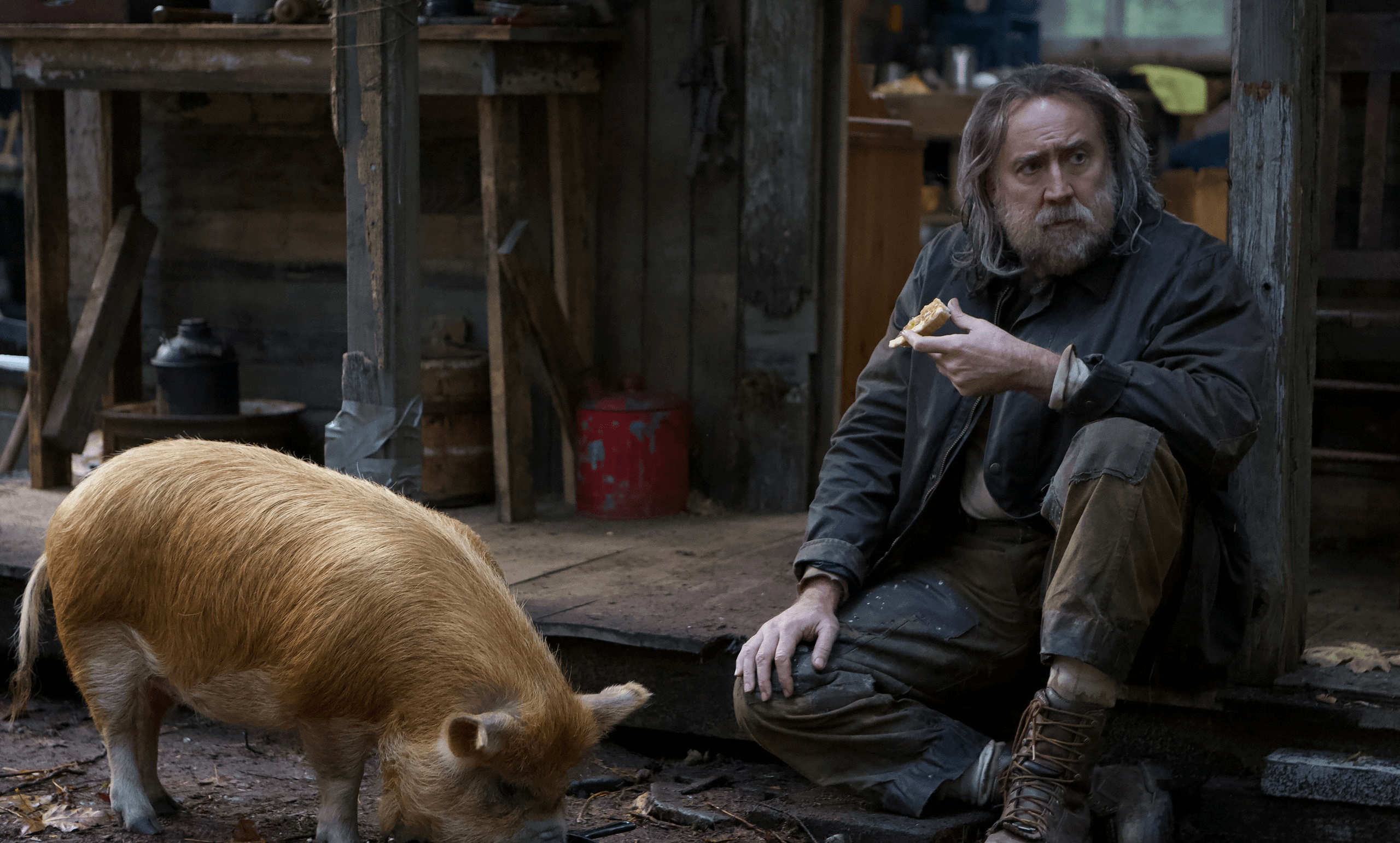 Nicholas Cage tunnetaan äärimmäisestä heittäytymisestään ja kyvyttömyydestään valita hyviä rooleja kovinkaan kummoisella osumatarkkuudella. Viime vuosina hän on turvautunut alati pöhkömpiin maneereihin, mutta Pig näyttää Cagen harvinaiseksi käyneen puolen. Toki mies on puvustettu ja meikattu mörökölliksi, mutta näyttelijäntyö on hyvinkin hillittyä. Ensimmäisen elokuvansa ohjannut Michael Sarnoski on saanut riehaantuneesta luonnenäyttelijästä ulos jotain sellaista, johon muut eivät ole kyenneet vuosikausiin.