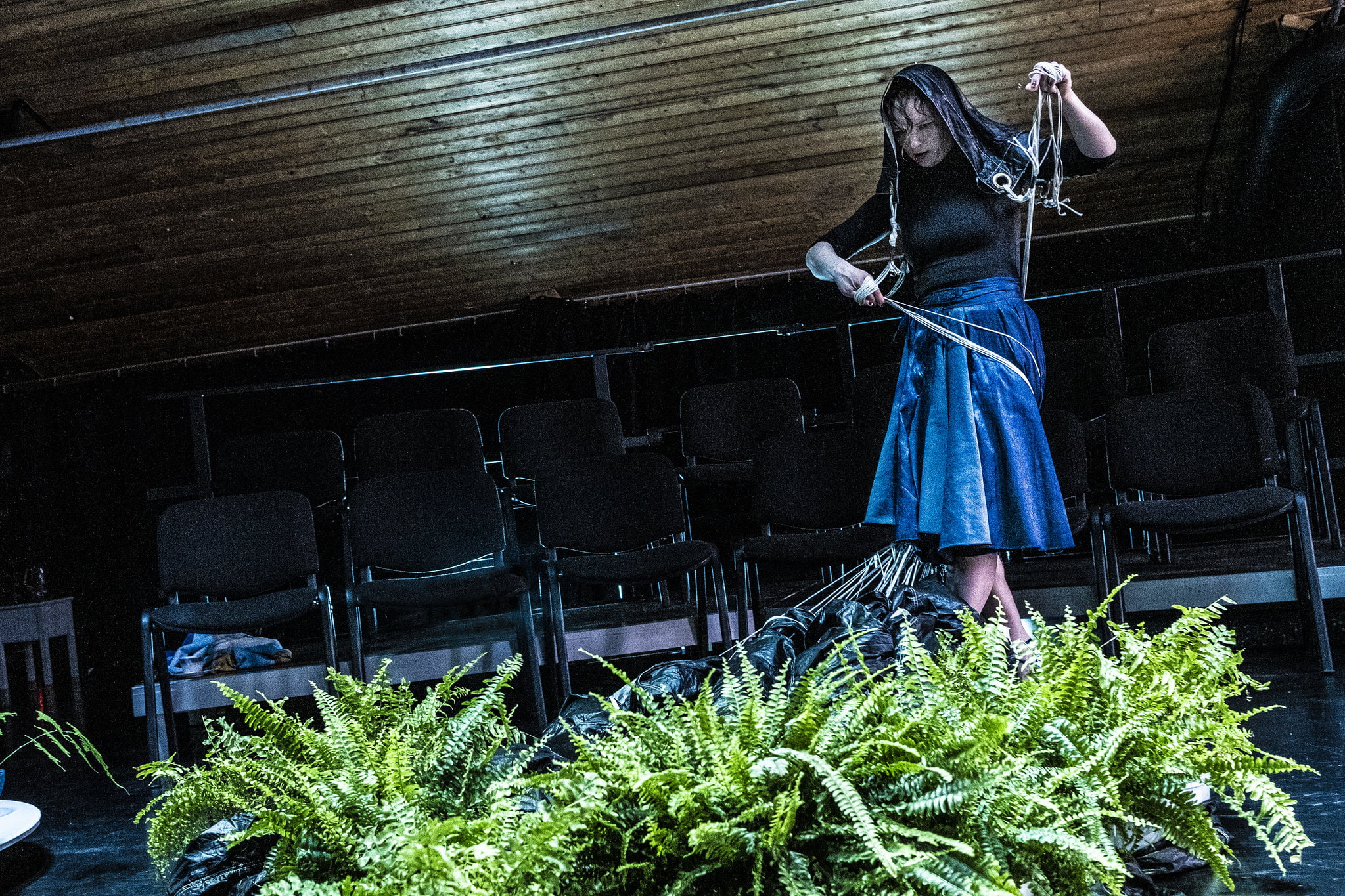 Kasvihuonetta muistuttavassa tilassa yksi esiintyjä näyttää torkkuvan ikiuntaan vihannoivan vehreyden alla kuin olisi olevaisuuden olemuksen tietävä Kalevalan Antero Vipunen. Hahmoista kaksi muuta nähdään silhuetteina vaalimassa kasvien hidasta olemisen liikettä.