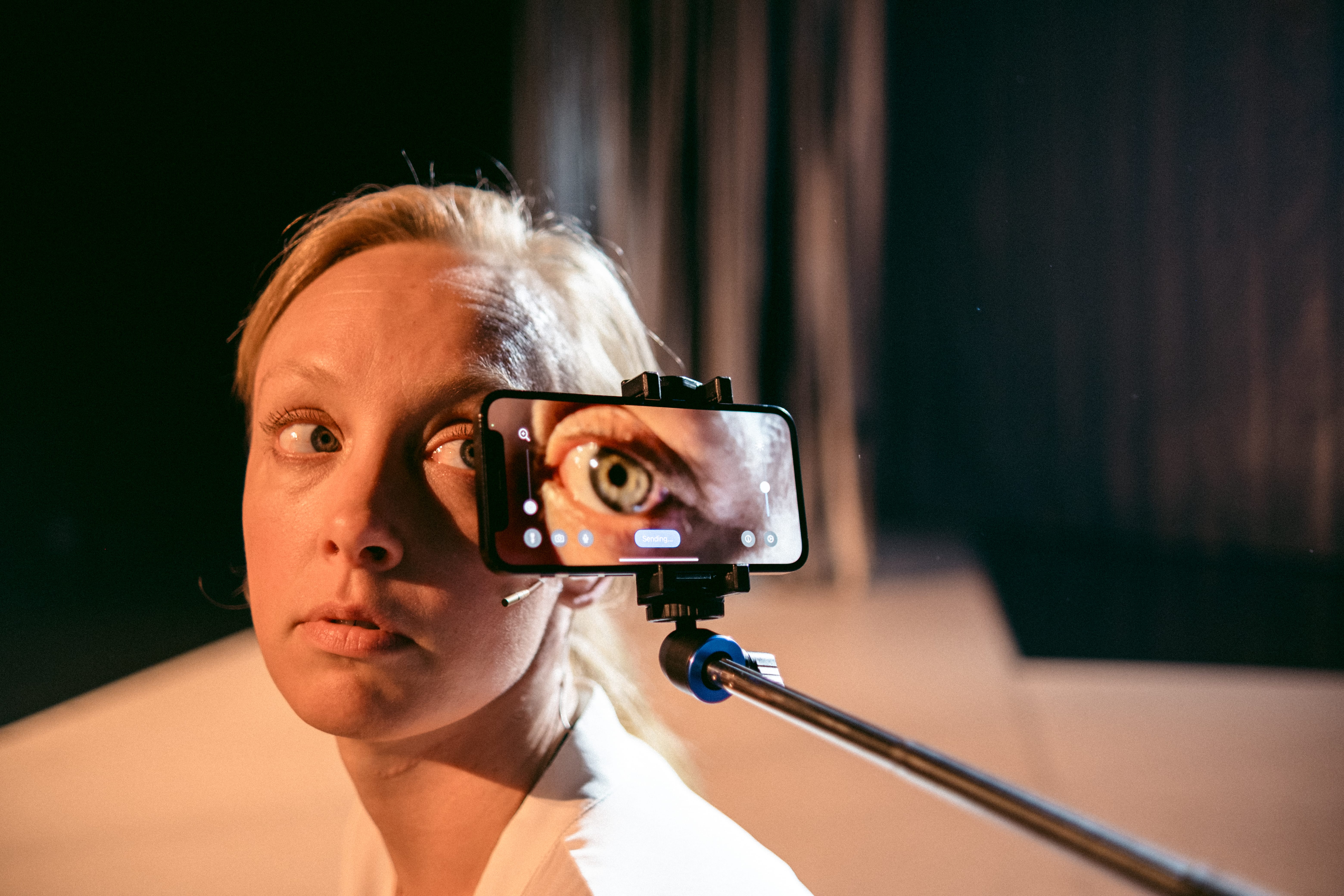 Trustissa teksti ja kehollinen liike kohtaavat myös digitaalisen ilmaisun. Kuvassa Anna Kuusamo.
