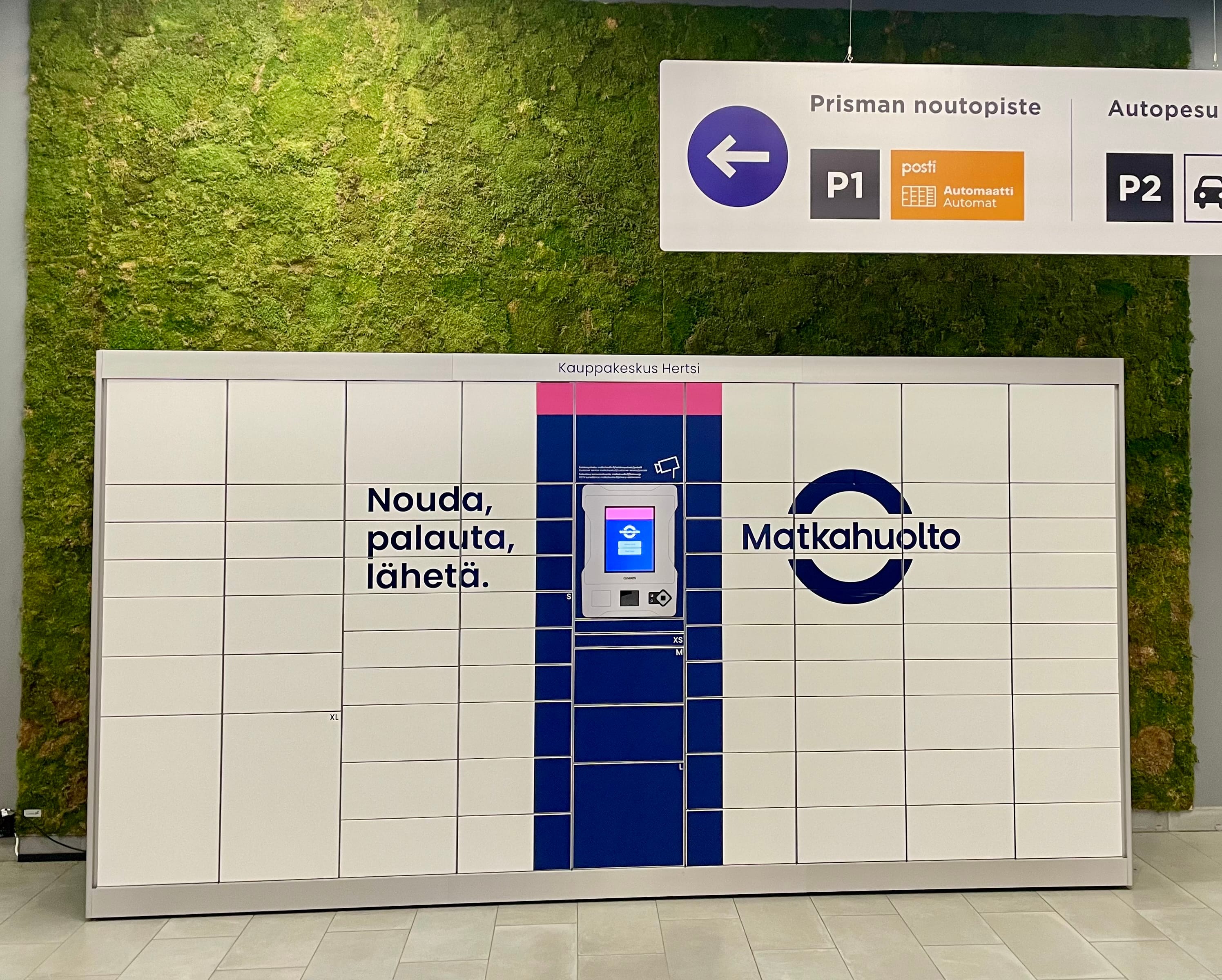 Koska tällainen hektinen hemmottelu voi tuntua vieraannuttavalta, on osattava rauhoittuakin ja ajateltava ihan muuta. Siksi Hertsin sisätiloja on somistettu. Matkahuollon automaatin takana näkyy oikea keidas! Ei voi olla totta, vihreää tähän aikaan vuodesta! Sen on minun ilokseni valmistuttanut ja tuonut paikalle vihersisustuksiin erikoistunut Luwasa Oy.