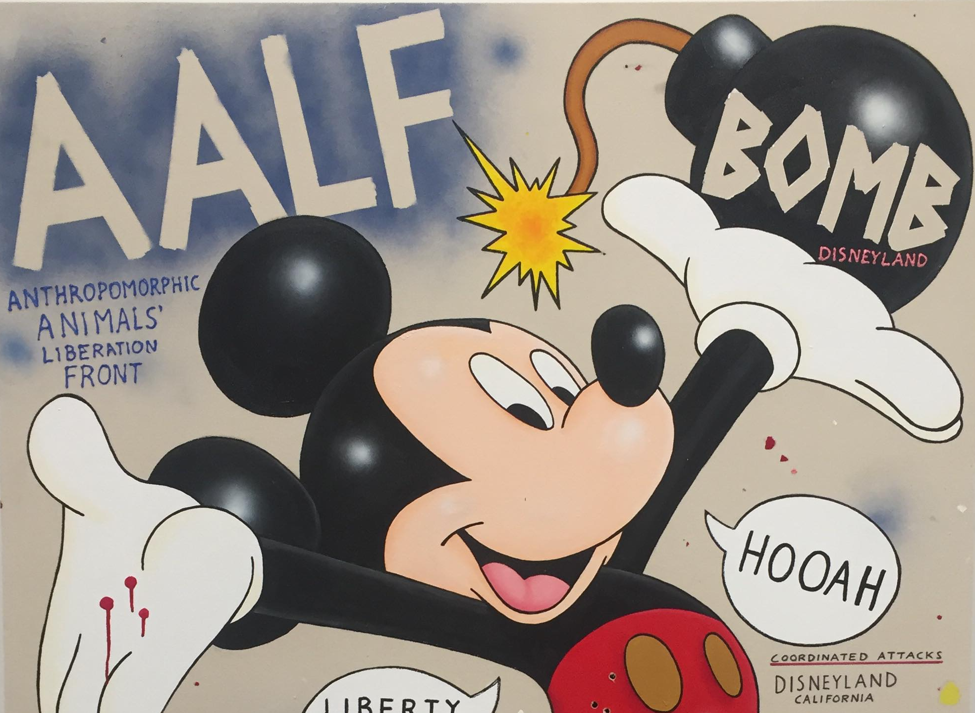 Näyttelyyn kuului myös tarina siitä, kuinka Disneylandissa käydessään taiteilija olisi saanut Mikki Hiireltä ryppyisen kirjeen, jossa oli tämän vapautusrintaman manifesti. Sakkinen julisti ”omistavansa uuden näyttely AALD:n aktivisteille ja kaikille maailman luonnonvastaisesti antropomorfisoiduille eläimille.”