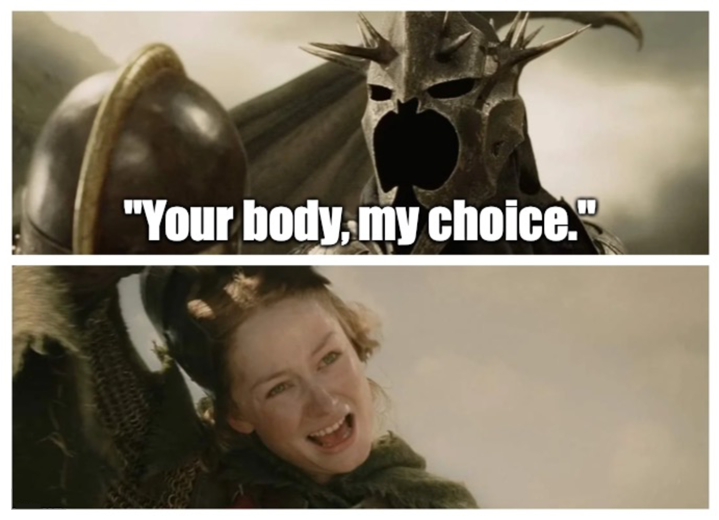 On vaikea hahmottaa sitä ihmisvihan ja erityisesti naisvihan määrää, joka tähän your body, my choice -tokaisuun sisältyy. Varmasti tätäkin selitetään vitsihuumorina, mutta kun samaan aikaan maassa on romutettu naisten oikeutta määrätä omasta kehostaan, niin ei tämä ihan pelkästään vitsiin tyhjenny.
