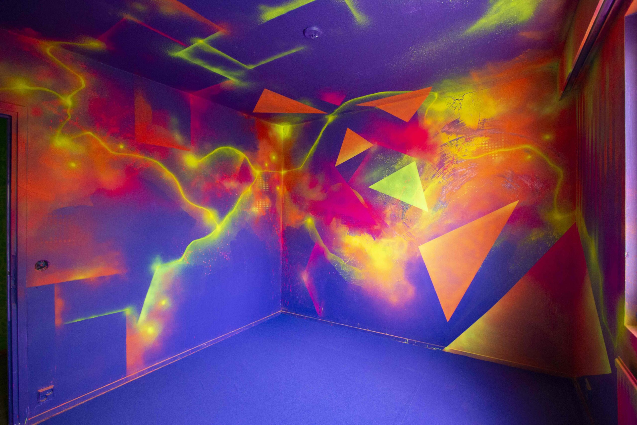 Osa taiteilijoista on saanut temmellyskentäkseen kokonaisen asuinhuoneiston ja jotkut ovat jakaneet isomman asunnon keskenään. Valitut tyylit ja tekniikat vaihtelevat asunnosta toiseen, eikä edellisten kämpän perusteella voi tehdä oletuksia siitä, mitä seuraavassa tulee vastaan. Myös porraskäytävä on maalattu kauttaaltaan, tietenkin.