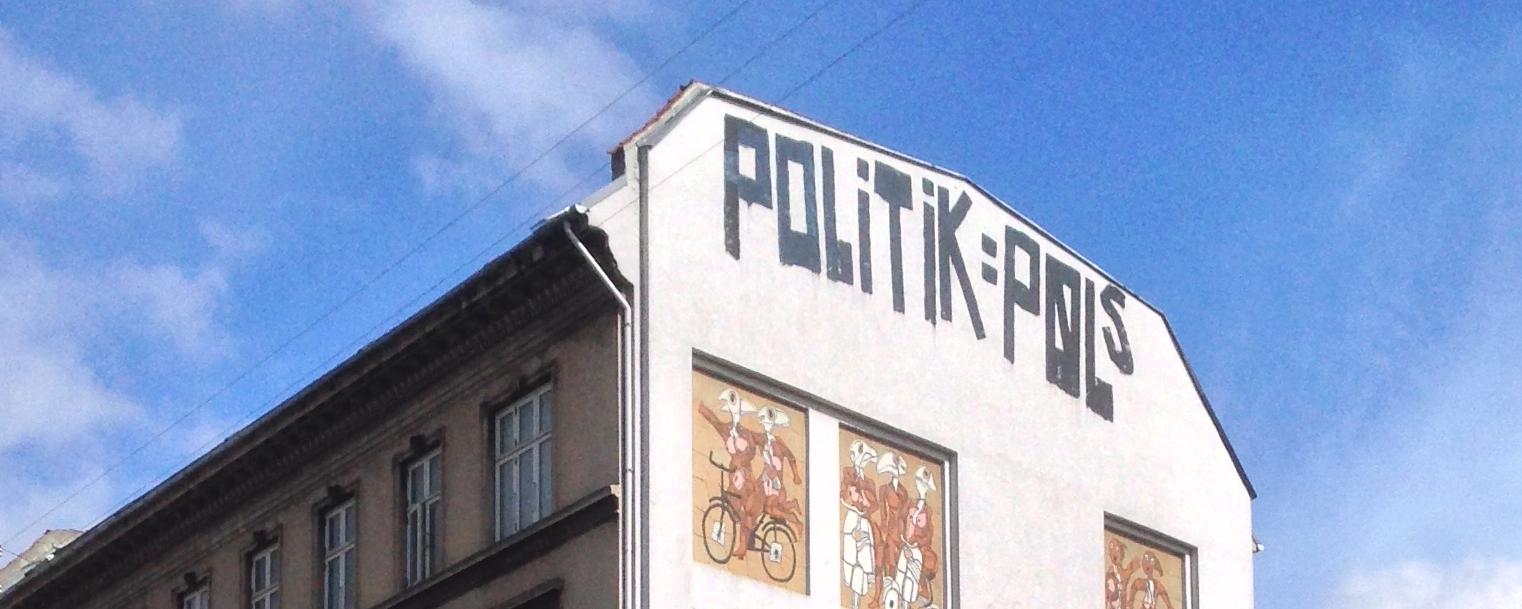 En siis ole ollenkaan yllättynyt tästä punaisen lihan hiilijalanjäljen nousemisesta keskusteluun, keskeinen aihe. Politiikan ja makkaran liitto oli myös näkyvästi esillä Köpiksen katukuvassa – suoraan asuntomme ulko-ovesta astuessa vastapäisen talon seinään oli kirjoitettu isolla ”politik = pøls”, eli politiikka = makkara”.