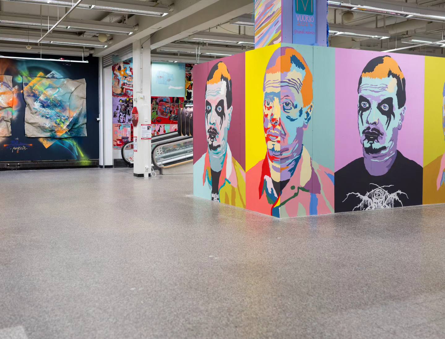 Viivi Kiiskisen vaaleanpunaisen Taukotila-installaation takana pilkistää Jussi TwoSevenin sabluunoiden avulla maalaama On the Run (Ursus arctos) -teossarja. TwoSevenin juuret ovat graffitissa ja tämä on näkynyt hänen valitsemissa teemoissa ja hyödyntämissään tekniikoissa. Gelleria- ja museoympäristön lisäksi TwoSeven on maalannut teoksiaan runsaasti myös julkiseen tilaan.