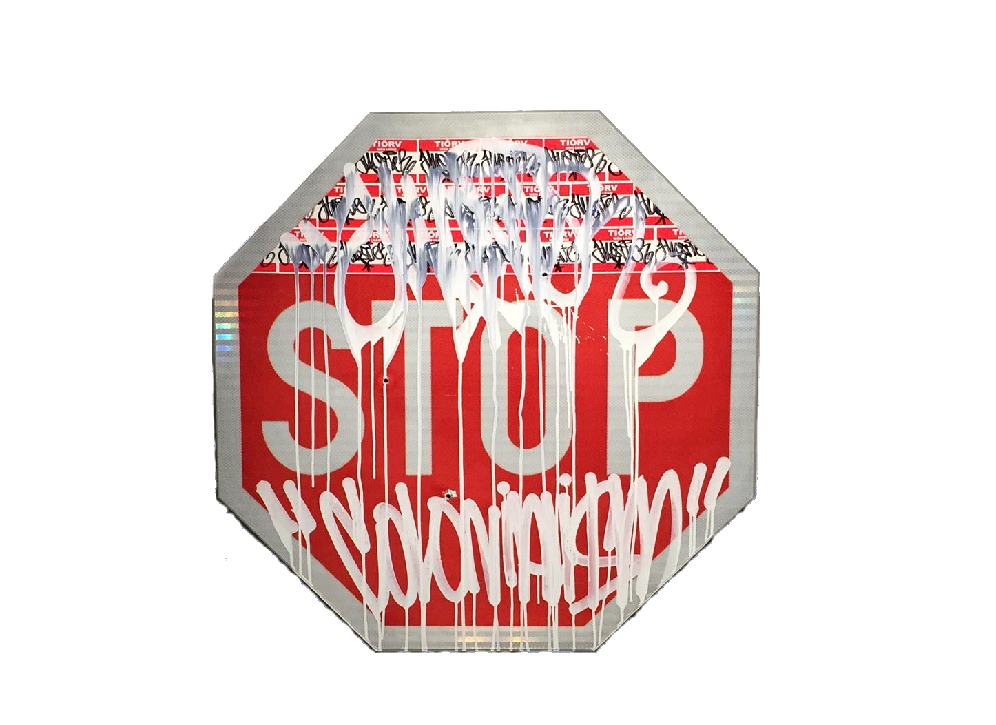 Näyttelyn teokset siirtävät graffitiestetiikkaa eri tavoin galleriatilaan ja leikittelevät sillä. Vaikka katutaide on aina vaikeuksissa siirtyessään pois kadulta, löytyy näyttelystä muistuma katutilasta esimerkiksi STOP-liikennemerkin muodossa. Liikennemerkkiin lisätty Colonialism-tägi muuttaa merkin merkityksen, mutta säilyttää siihen sisältyvän käskyn.