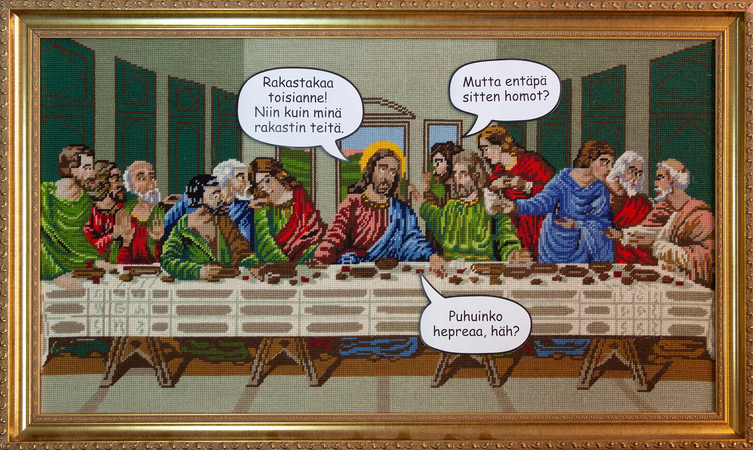 Onneksi teos on kuitenkin taltioitu esimerkiksi ristipistotöinä lukemoattomien kotien seinille.