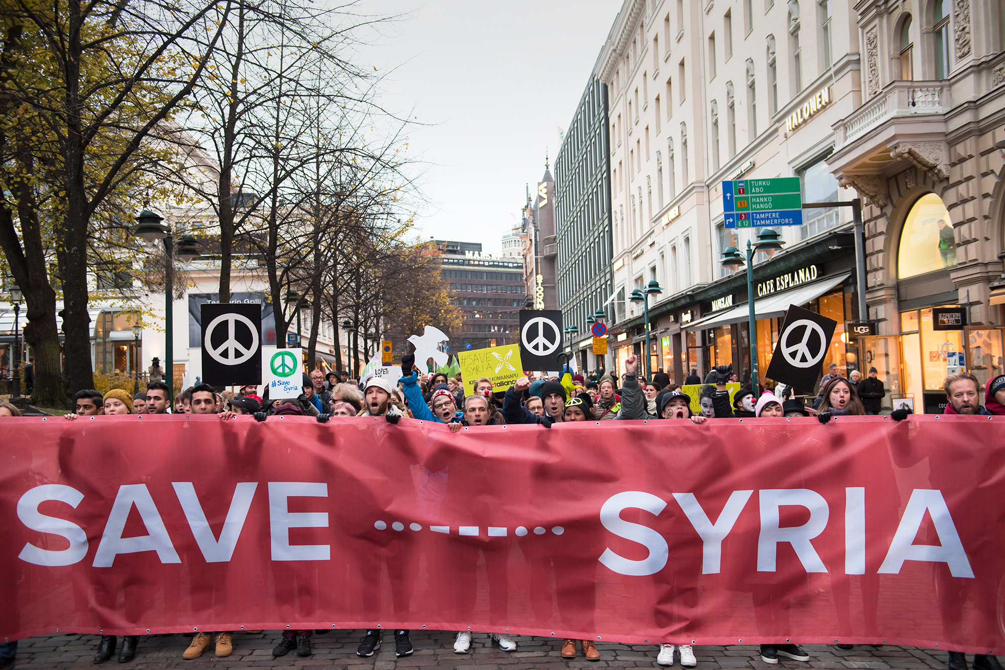 Samalla, kun maamme hallitus jakelee aseidenvientilupia ennennäkemättömällä tahdilla kansalaiset marssivat kadulla Syyrian sotaa vastaan. Nämä liittyvät toisiinsa hyvinkin läheisesti.