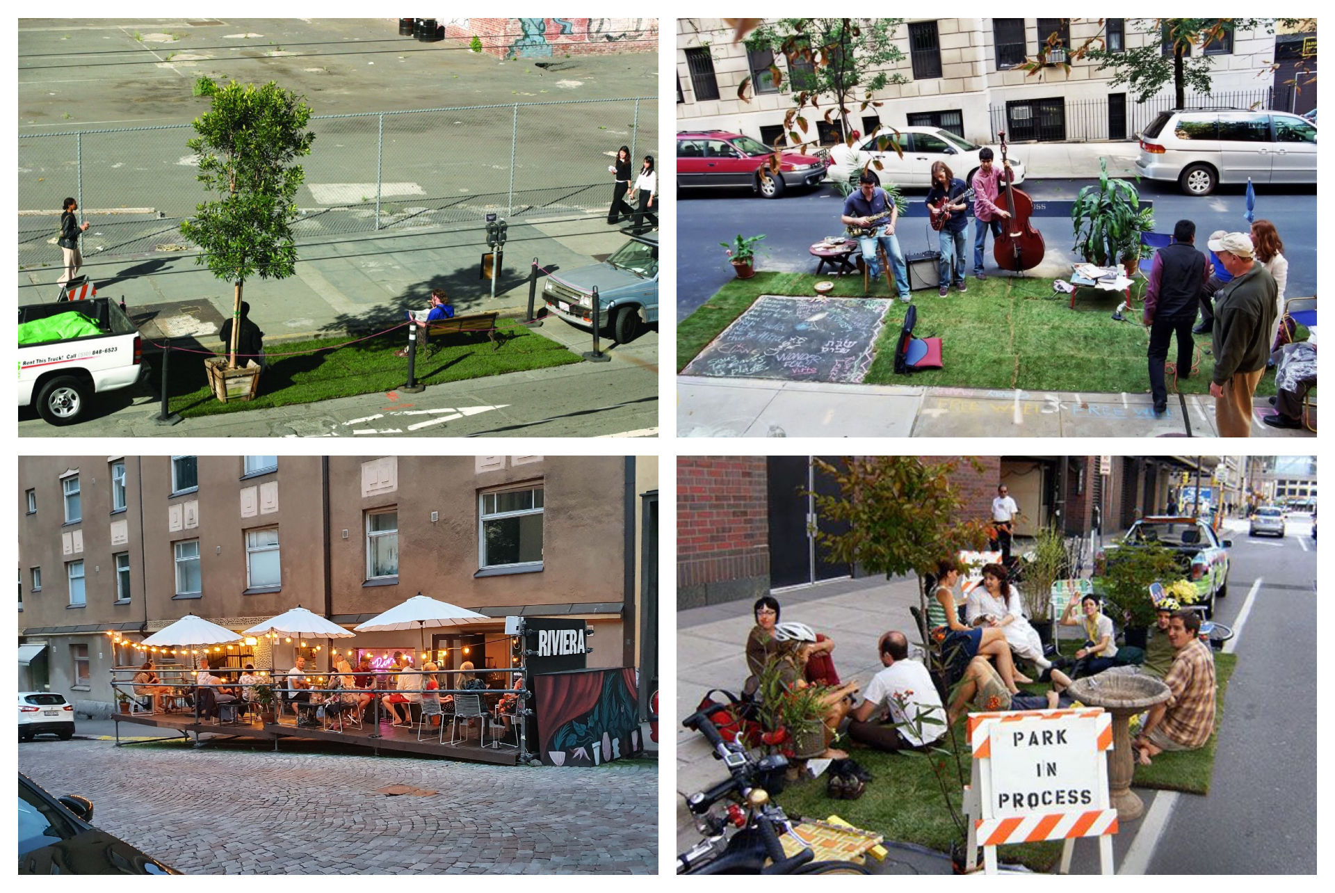 Vuonna 2005 San Franciscossa taiteeseen, muotoiluun ja aktivismiin keskittynyt Rebar-toimisto järjesti Park(ing) Day -tempauksen, jossa aktivistit/taiteilijat valtasivat parkkiruutuja muutaman tunnin ajan. He muuttivat nuo parkkikset hetkellisesti puistoiksi, baareiksi, keikkapaikoiksi. Teollaan he halusivat kiinnittää yleisön huomion siihen, kuinka paljon kaupunkitilaa on varattu autoille ja siihen, että toisinkin voisi olla.