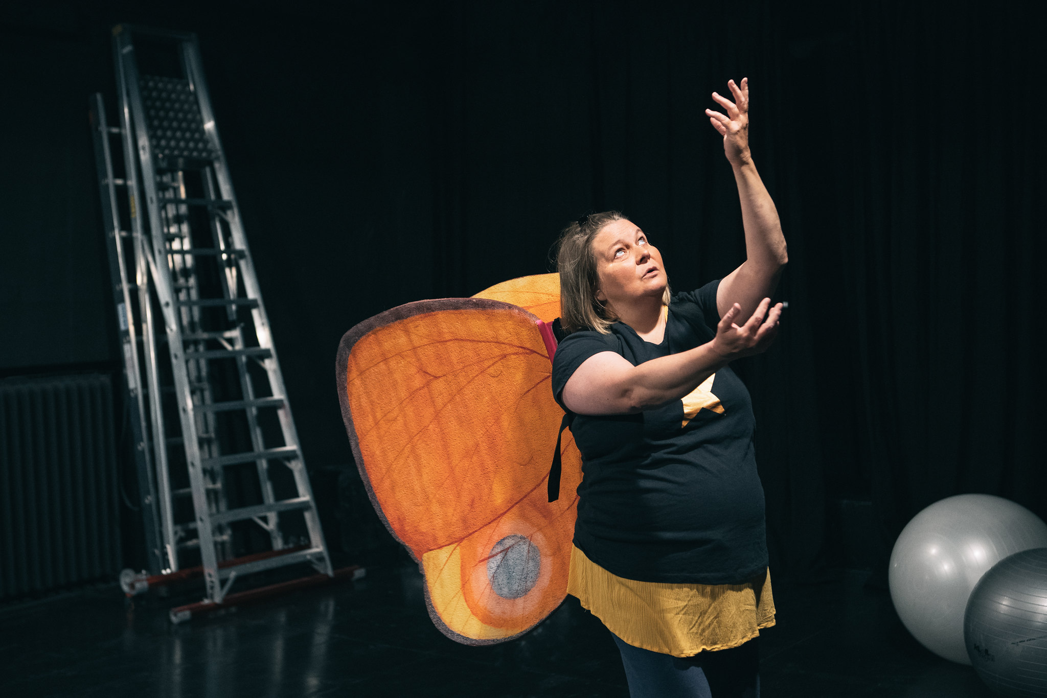 Tunnelmaa vahvistaa sekin, että teatteri-ilta on monelle koronarajoitusten jälkeen ensimmäinen sisätilaesitys kuukausiin. Yhä ajankohtaiset varotoimet näkyvät esimerkiksi siinä, miten katsomopaikkoja on tavallista paljon vähemmän ja jäljelle jätetyt tuolit oli aseteltu yli metrin turvavälein.