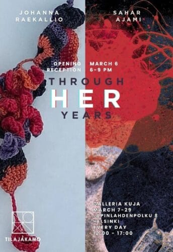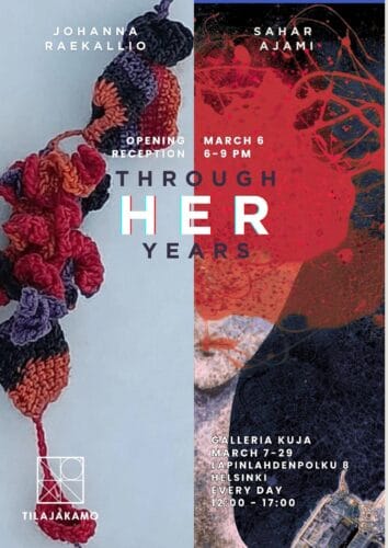Sahar Ajamin ja Johanna Raekallio ”Through her years” 7.3-29.3. 2026 Rakkaat ystävät ja taiteen rakastajat! Meillä on ilo kutsua teidät uuden yhteisnäyttelymme avajaisiin juhlistamaan luovuuden voimaa ja naisääniä taiteessa. Avajaiset Pe 6.3. Klo 18:00-21:00 Paikka: Galleria Kuja Lapinlahdenpolku 8, Helsinki Sahar Ajamin ja Johanna Raekallion yhteisnäyttely on luova tutkimusmatka ihmisen kokemukseen vuosien ajalta. Maalauksen, kuvitusten […]