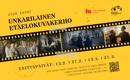Hyviä uutisia elokuvan ystäville – unkarilaisten etäelokuvien sarja jälleen 13.2. alkaen! Kevään ohjelmisto: 13.2. We Started Together (Együtt kezdtük, 2022, ohj. Yvonne Kerékgyártó) 27.2. Hyppolit, the Butler (Hyppolit, a lakáj, 1931, ohj. István Székely) 13.3. Now or Never! (Most vagy soha!, 2024, ohj. Balázs Lóth) 27.3. Mercy (Magyar Passió, 2021, ohj. Károly Eperjes, Róbert Pájer) Ilmoittauduthan elokuviin seuraavan linkin kautta: https://forms.office.com/e/dW1ne3ENsW – ilmoittautumalla saat KAIKKIEN tulevien elokuvien linkit sähköpostitse […]