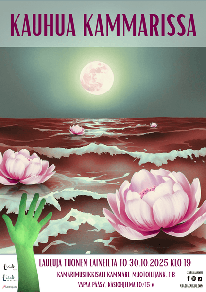 Arabia kaikuu -liedkollektiivin järjestämässä, kevyesti dramatisoidussa Kauhua Kammarissa -konsertissa kuullaan lauluja kalman kynnykseltä, joka ylitetään useamman kerran – kumpaankin suuntaan. Pääosassa ovat tuonen aaltoihin katoavat naiset, kuten Hamletin Ofelia ja Kalevalan Aino, jotka myöhemmin nousevat haudoistaan itsensä Kuoleman käskemänä.