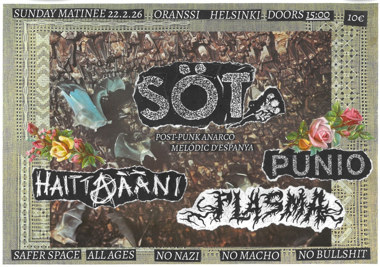 SU 22.2. Punk-matinea @ Oranssi: SÖT (ES), PLASMA, PUNIO, HAITTAÄÄNI
