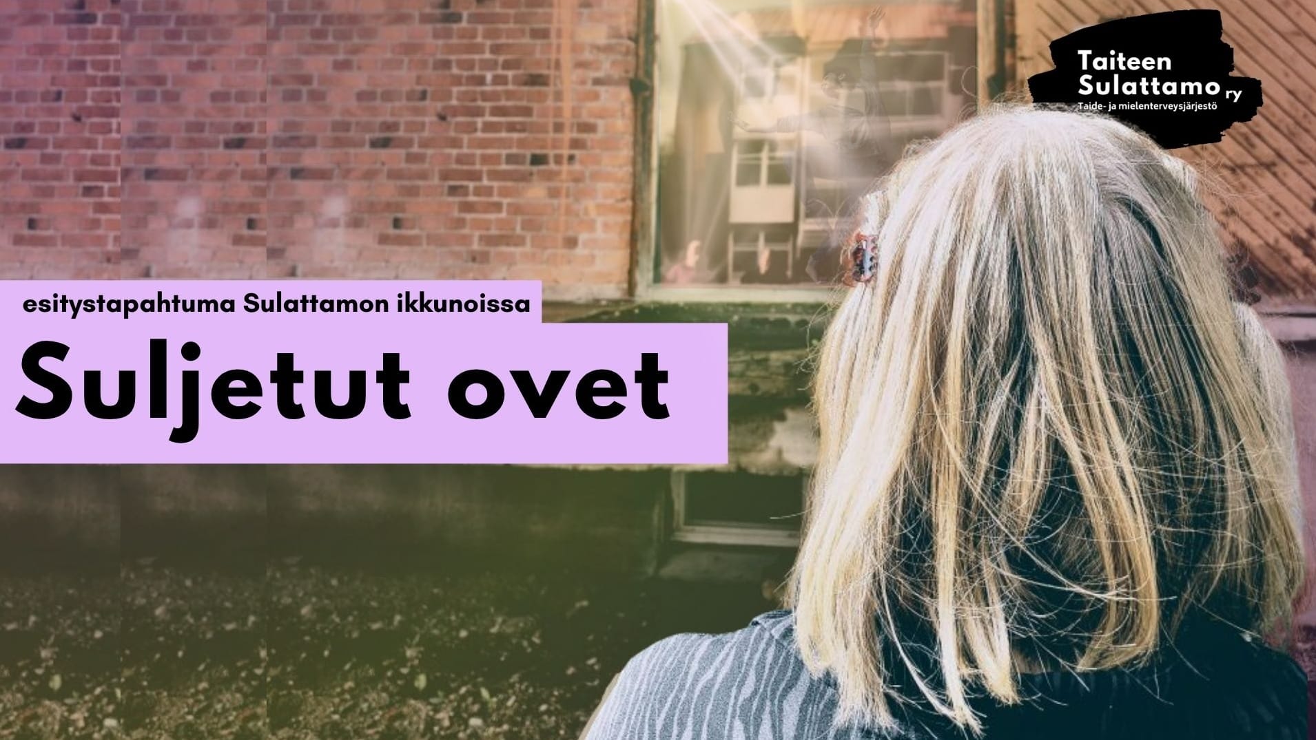 Suljetut ovet -tapahtumassa ke 26.11. klo 17–19 Taiteen Sulattamon ikkunoissa (Malmin raitti 17 A ja C) nähdään erilaisia lyhyitä esityksiä ja taideteoksia, joita yleisö pääsee seuraamaan ulkopuolelta.